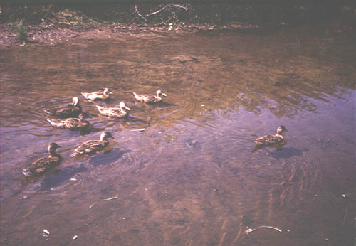 Une famille de canards Colverts, aussi appelé Malards, sur la rivière St-Charles, près de Québec. |