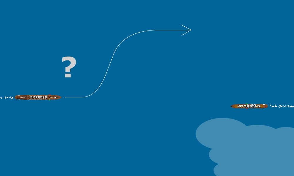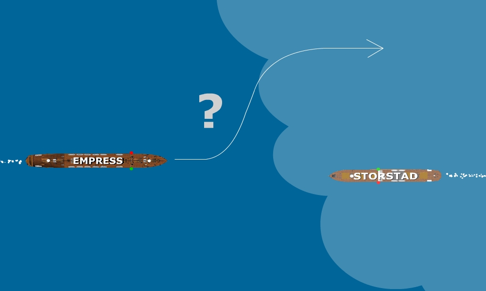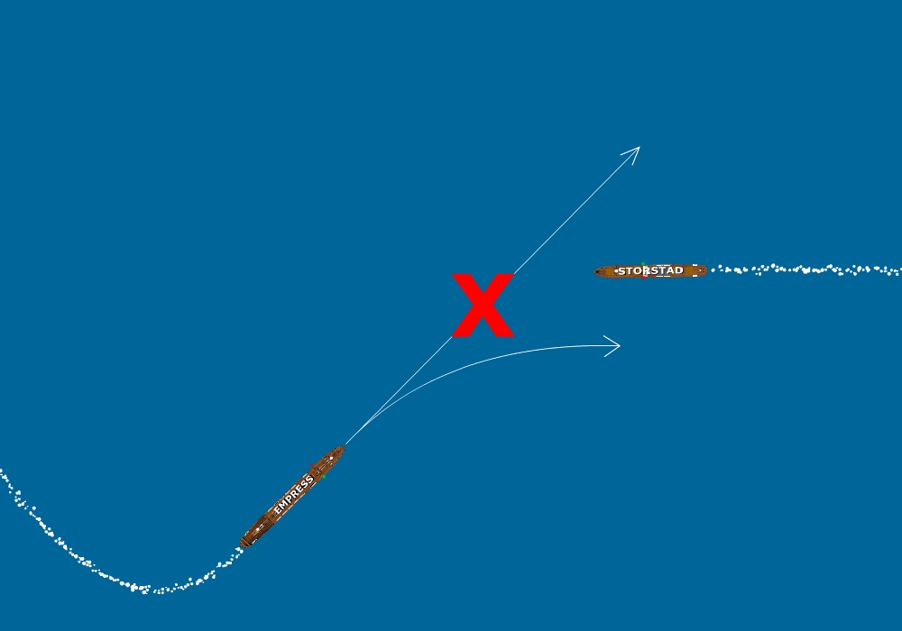 La manoeuvre des Norgéviens de mettre barre à droite et machine avant 1/3 visait, selon leur témoignage, à donner prise à leur gouvernail pour contre-carrer l'effet du courant qui pouvait les amener sur leur gauche, où ils étaient persuadés que l'Empress se trouvait.