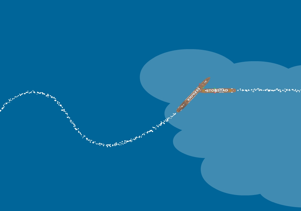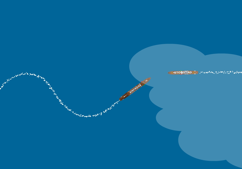 | " ... la dernière vision de l’Empress qu’ils ont eue entrant dans la brume est qu’il présentait son feu rouge et que les feux de tête de mat étaient écartés..." | |