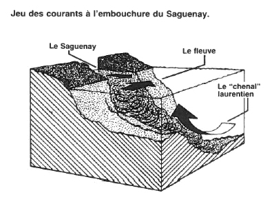 Le chenal laurentien se terminant vis-à-vis le Saguenay, ce courant inverse remontera vers la surface à cet endroit. Les éléments nutritifs qu'il transporte, mêlés à ceux du fleuve et du Saguenay, y produiront une importante concentration alimentaire. C'est en grande partie pourquoi on rencontre dans cette zone autant de baleines, attirées qu'elles sont par la vie animale qui y prolifère grâce à cet apport d'engrais naturels.