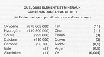 Les minéraux contenus dans l'eau de mer sont à la base de toutes les pyramides alimentaires marines puisqu'ils servent de "carburant" aux producteurs de matière vivante, surtout les algues.