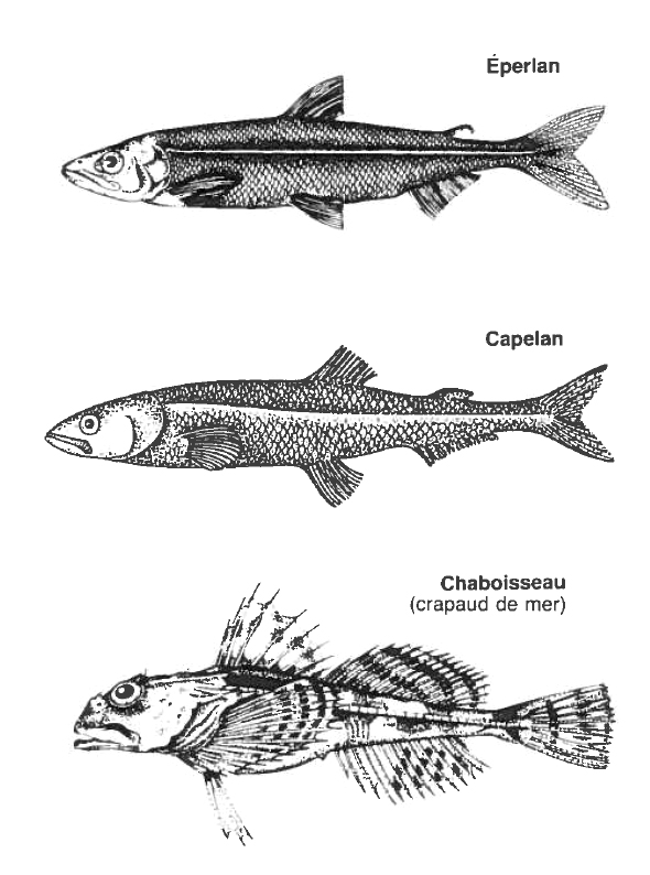 Le Capelan est légèrement plus petit que l'Éperlan. La particularité de cet "élégant" poisson réside dans le fait qu'il vient frayer sur les plages sablonneuses, à la faveur d'une bonne marée. On dit alors que le Capelan "roule". Cet intéressant et populaire phénomène survient annuellement ici à partir du début de mai.