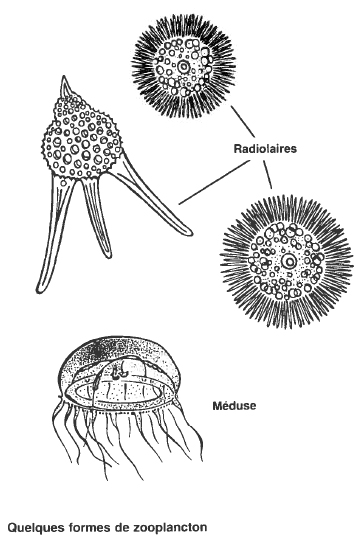 Dans la chaîne alimentaire marine, le zoo-plancton, ou plancton animal, est le maillon qui suit immédiatement le phytoplancton. Le zoo-plancton doit donc pour survivre se nourrir surt9ut de ces algues microscopiques décrites précédemment. A son tour, il sera une précieuse source alimentaire pour bon nombre de poissons et d'invertébrés, sans oublier quelques espèces de baleines.