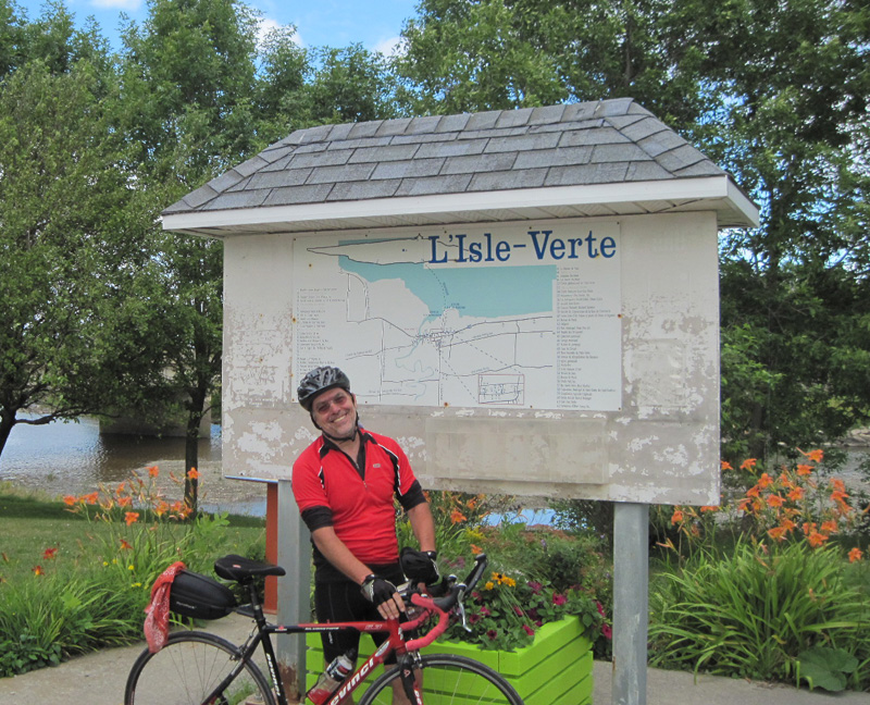 C'est dans ce village que lors de la dernière tentative ma roue avant est tombée dans un trou "invisible", parce que confondu avec l'ombrage d'un arbre. J'avais dû arrêter mon périple à Rivière-du-Loup à cause d'un violent mal de cou. Je me méfie donc et porte extrême attention à mon passage dans ce lieu, fort typique par ailleurs.